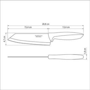 - Lâmina em aço inox.- Cabo de polipropileno.- a Espessura do aço e formato da peça evita deformações.- A faca recebe tratamento térmico especial, o que dá maior durabilidade ao fio.- resistente à máquina de lavar louças.