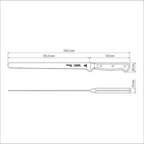 Ideal para cortar fatias finas de fiambres. A lâmina forjada de aço inox especial garante um fio com maior durabilidade e precisão. A lâmina possui tratamento térmico diferenciado, composto por têmpera, sub-zero e revenimento. E conta com dureza da lâmina de 55 e 58 HRC, que garante maior resistência do fio e precisão no corte. O cabo de policarbonato reforçado com fibra de vidro garante alta durabilidade, equilíbrio e segurança. O cabo ergonômico proporciona maior segurança, equilíbrio e conforto na hora do corte. Pode ir à máquina de lavar louças facilitando seu dia a dia
