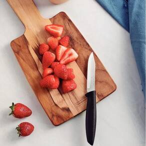 - Possui três polegadas - Ideal para cortar, descascar e fazer cortes delicados - A lâmina de aço inox têm maior durabilidade do fio devido ao tratamento térmico - O cabo de polipropileno possui maior resistência e durabilidade - Pode ir à máquina de lavar louças facilitando seu dia a dia.