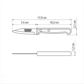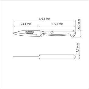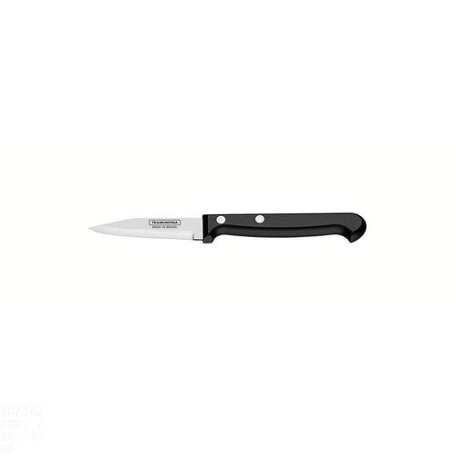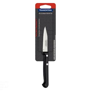 A Faca para Legumes e Frutas Tramontina Ultracorte com Lâmina em Aço Inox e Cabo de Polipropileno Preto 3 Polegadas da Linha Ultracorte é uma peça indispensável na sua cozinha. Projetada para cortes pequenos e delicados de legumes e frutas, ela atende as suas necessidades em diferentes receitas. A lâmina de 3 polegadas é produzida em aço inox e recebe tratamento térmico que dá mais durabilidade ao fio. O cabo de polipropileno na cor preta é resistente e tem proteção antimicrobiana que inibe o crescimento de bactérias e fungos. É uma peça que pode ser levado à máquina de lavar louças. Orientações Ideal para cortar, descascar e fazer cortes delicados.A lâmina de aço inox têm maior durabilidade do fio devido ao tratamento térmico. O cabo de polipropileno possui maior resistência e durabilidade. E conta com proteção antimicrobiana, que inibe e reduz o crescimento de bactérias e fungos proporcionando benefícios em higiene e redução de microorganismos que causam contaminação. Esta ação dura por toda a vida útil dos produtos, mas não elimina a necessidade de limpeza.Rebites de alumínio.Pode ir à máquina de lavar louças facilitando seu dia a dia. Características Gerais EAN13 7891112068070 DUN14 17891112068077 NCM 8211.92.10 Peso Líquido 0,0250 kg. Peso Bruto 0,0340 kg. Metragem 0,000228 m³. Dimensões Embalagem (Compr. X Larg. X Alt.) 64x 14x 255 mm. Dimensões Produto (Compr. X Larg. X Alt.) 179x 21x 12 mm. Cor 1 000000 Hexa Observações Antes da primeira utilização, lave bem a peça e seque-a. Produto cortante e perfurante: tenha cuidado ao manusear e mantenha fora do alcance das crianças. Para maior durabilidade do produto recomenda-se secar bem antes de guardar, mesmo após lavagem em máquina. Recomenda-se o uso de tábuas de polipropileno ou madeira da Tramontina para maior durabilidade do fio da faca. Não é indicado o uso da faca para o corte de alimentos congelados. Mantenha sempre sua faca afiada utilizando os afiadores da Tramontina.Para descarte dos produtos e embalagens siga as orientações de reciclagem vigentes.