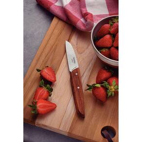 Faca para Legumes e Frutas Tramontina Verttice com Lâmina em Aço Inox e Cabo de Madeira Natural 3" A Faca para Legumes e Frutas Tramontina Verttice com Lâmina em Aço Inox e Cabo de Madeira Natural 3 polegadas vai garantir toda a funcionalidade que você precisa em sua cozinha. Perfeita para cortar, descascar e fazer cortes delicados em legumes e frutas, ela é produzida com lâmina em aço inox com maior durabilidade em seu fio de corte, devido ao tratamento térmico. Seu cabo é em madeira natural com rebites em aço inox, é resistente e proporciona um manuseio super confortável. A escolha perfeita para completar sua coleção de facas! Instruções de Primeiro Uso Antes da primeira utilização, lave bem a peça e seque-a.Produto cortante e perfurante: tenha cuidado ao manusear e mantenha fora do alcance das crianças.Para maior durabilidade do produto recomenda-se lavar manualmente e secá-lo antes de guardar.Recomenda-se o uso de tábuas de polipropileno ou madeira da Tramontina para maior durabilidade do fio da faca. Não é indicado o uso da faca para o corte de alimentos congelados. Mantenha sempre sua faca afiada utilizando os afiadores da Tramontina. Para descarte do produto e embalagem siga as orientações de reciclagem vigentes. Garantia 90 dias para vícios ou defeitos de fabricação.