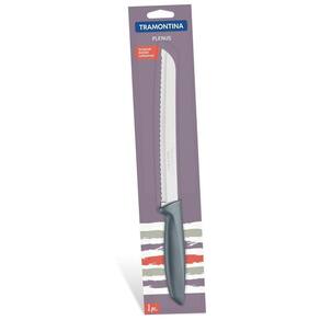 Leve mais estilo e bem-estar na hora de servir aquela receita de pão quentinho. A Faca para Pão Tramontina Plenus com Lâmina em Aço Inox e Cabo de Polipropileno Cinza 8 polegadas da Linha Plenus é uma peça essencial para as tarefas do dia a dia. Com lâmina de 8 polegadas produzida em aço inox, ela possui um confortável cabo em polipropileno na cor cinza. Ela é ideal para cortar pães sem amassá-los, facilitando as atividades diárias e levando mais bem-estar e comodidade para sua casa. Linha Tramontina Plenus: o melhor para sua cozinha! Orientações A lâmina serrilhada corta sem amassar.A lâmina de aço inox têm maior durabilidade do fio devido ao tratamento térmico. O cabo de polipropileno possui maior resistência e durabilidade. Pode ir à máquina de lavar louças facilitando seu dia a dia. Observações Antes da primeira utilização, lave bem a peça e seque-a. Produto cortante e perfurante: tenha cuidado ao manusear e mantenha fora do alcance das crianças. Para maior durabilidade do produto recomenda-se secar bem antes de guardar, mesmo após lavagem em máquina. Recomenda-se o uso de tábuas de polipropileno ou madeira da Tramontina para maior durabilidade do fio da faca. Não é indicado o uso da faca para o corte de alimentos congelados. Para descarte dos produtos e embalagens siga as orientações de reciclagem vigentes. Características Gerais EAN13 7891112225152 DUN14 17891112225159 NCM 8211.92.10 Peso Líquido 0,0746 kg. Peso Bruto 0,0990 kg. Metragem 0,000645 m³. Dimensões Embalagem (Compr. X Larg. X Alt.) 22x 77x 381 mm. Dimensões Produto (Compr. X Larg. X Alt.) 322x 34x 18 mm. Cor 1 53565A Hexa