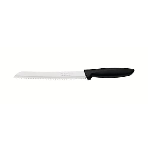 A faca para pão Tramontina Plenus com lâmina em aço inox e cabo de polipropileno preto 8 polegadas é essencial para cortar e servir aquele pão delicioso para seu café da manhã. Ideal para lhe acompanhar todos os dias, ela é produzida com lâmina em aço inox de fio serrilhado com tratamento térmico e cabo de polipropileno, garantindo toda a resistência e durabilidade que sua cozinha necessita. Ela ainda é muito fácil de limpar e pode ser lavada na máquina de lavar louças, otimizando sua rotina na cozinha!