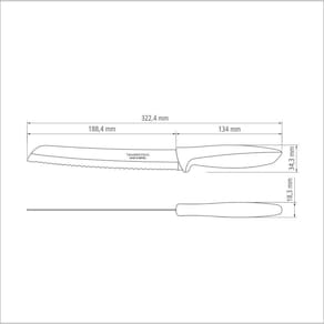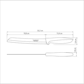 A lâmina serrilhada corta sem amassar.A lâmina de aço inox têm maior durabilidade do fio devido ao tratamento térmico. O cabo de polipropileno possui maior resistência e durabilidade. Pode ir à máquina de lavar louças facilitando seu dia a dia.