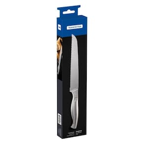 A lâmina serrilhada corta sem amassar o seu pão. Lâmina e cabo de aço inox que mantém suas características garantindo durabilidade e higiene. A lâmina de aço inox têm maior durabilidade do fio devido ao tratamento térmico. Pode ir à máquina de lavar louças facilitando seu dia a dia.