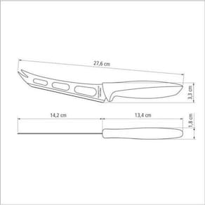 - Lâmina em aço inox.- Cabo de polipropileno.- a Espessura do aço e formato da peça evita deformações.- A faca recebe tratamento térmico especial, o que dá maior durabilidade ao fio.- resistente à máquina de lavar louças.
