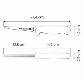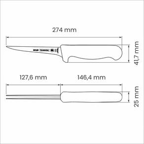 Lâmina fabricada com aço inox de altíssima qualidade que, aliado ao eficiente tratamento térmico sub-zero, confere à faca grande resistência ao desgaste do fio.Cabo de polipropileno com proteção antimicrobiana que inibe o crescimento de bactériase fungos.Certificada pelo NSF, National Sanitation Foudation, organização reconhecida internacionalmente pelas práticas de consultoria, inspeção e treinamento, voltados à garantia da sanidade de alimentos, água, ar e ambiente.Pode ir à máquina de lavar louças.