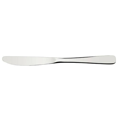 - Faca totalmente temperada, que garante maior durabilidade no fio de corte e maior resistência à corrosão, e por sua característica de temperabilidade, não risca as porcelanas. - Totalmente feita de aço inox, mantém suas características originais, preservando a beleza, a higiene e a durabilidade do material. - Acabamento em brilho, com detalhes no cabo. - Própria para uso diário combina com qualquer ambiente. - Pode ser lavada diariamente na máquina de lavar louças. Orientações Material: aço inox.Com código de barras. Observações Use apenas sabão ou detergente e uma esponja macia. Outros tipos de produtos, como palha de aço, poderão riscar ou prejudicar o brilho dos talheres. Enxágue bem cada peça a fim de remover totalmente os resíduos dos produtos de limpeza, que, por serem abrasivos, podem atacar o inox. Sempre que possível, use água quente, pois renova o brilho do talher. Após a lavagem, enxugue imediatamente os talheres, caso contrário, as substâncias químicas da água (cloro) poderão causar manchas. Evite atrito entre os talheres durante o processo de lavagem e no armazenamento, para mantê-los sem riscos. Evite o contato das peças com superfícies quentes. Elas provocam a descoloração do produto. Não guarde os talheres em locais úmidos. A umidade também provoca manchas.Qualquer faca, independentemente de marca, para manter o fio de corte, é fabricada em aço com maior teor de carbono e, por isso, é menos resistente à corrosão. Assim, pedimos uma atenção especial para este artigo, pois estará mais propenso aos problemas citados. Usando máquina de lavar louças Não carregue em demasia a cesta dos talheres. Separe bem as peças, pois o contato permanente entre as mesmas, durante a secagem, poderá causar manchas. Retire os talheres logo que tenha terminado o ciclo"enxaguar", a fim de que os mesmos sejam secados manualmente. Características Gerais EAN13 7891116082393 DUN14 17891116082390 NCM 8211.91.00 Peso Líquido 0,0395 kg. Peso Bruto 0,0395 kg. Metragem 0,000021 m³. Dimensões Embalagem (Compr. X Larg. X Alt.) 209x 20x 5 mm. Dimensões Produto (Compr. X Larg. X Alt.) 209x 20x 5 mm. Espessura 3,0 mm.