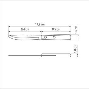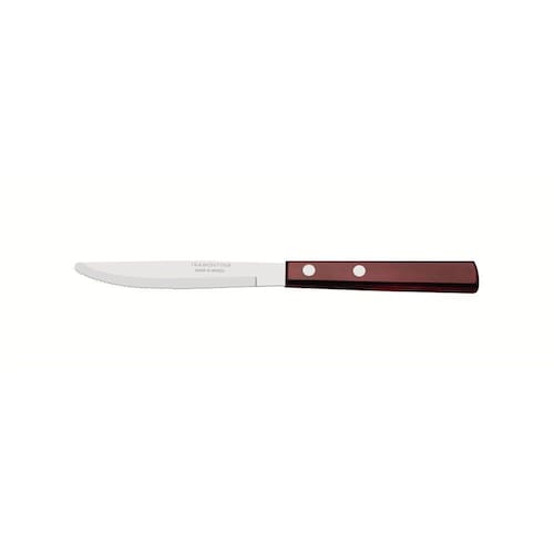 Com a Faca para Sobremesa Tramontina com Lâmina em Aço Inox e Cabo em Madeira Polywood Vermelho 3 polegadas qualquer delícia será servida com o requinte que merece. A peça é perfeita para compor a mesa em recepções durante o dia ou em aniversários, sua sobremesa estará protegida com mais esse lindo talher. Além de ter lâmina produzida em aço inox de alta durabilidade, o talher deixará sua cozinha mais bonita devido ao seu cabo em madeira tratada Polywood. Elegância e qualidade tem nome e é Tramontina! Orientações A lâmina de aço inox tem maior durabilidade do fio devido ao tratamento térmico. O cabo de madeira tratada Polywood é resistente à impactos e alta temperaturas garantindo maior resistência e durabilidade. Rebites de alumínio. Pode ir à máquina de lavar louças facilitando seu dia a dia. Características Gerais EAN13 7891112023512 DUN14 17891112023519 NCM 8211.91.00 Peso Líquido 0,0235 kg. Peso Bruto 0,0235 kg. Metragem 0,000026 m³. Dimensões Embalagem (Compr. X Larg. X Alt.) 180x 16x 9 mm. Cor 1 93272C Hexa Observações Antes da primeira utilização, lave bem a peças e seque-a. Produto cortante e perfurante: tenha cuidado ao manusear e mantenha fora do alcance das crianças.Para maior durabilidade do produto recomenda-se secar bem antes de guardar, mesmo após lavagem em máquina. Para descarte do produto e embalagens siga as orientações de reciclagem vigentes.
