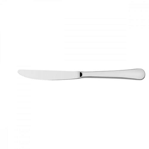 Totalmente feita de aço inox, altamente durável, mantém suas características , preservando a beleza, a higiene e a durabilidade do material. Faca totalmente temperada, que garante maior durabilidade no fio de corte e maior resistência à corrosão, e por sua característica de temperabilidade, não risca as porcelanas. O cabo da faca se adapta melhor a palma da mão. Possui equilíbrio harmônico entre o cabo e a lâmina. Acabamento em alto brilho. Pode ser lavada diariamente na máquina de lavar louças.