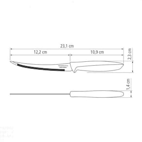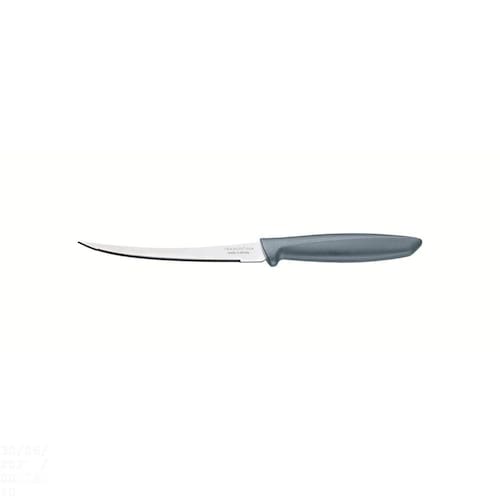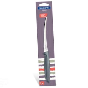 A Faca para Tomate Tramontina Plenus com Lâmina em Aço Inox e Cabo de Polipropileno Cinza 5 Polegadas da Linha Plenus é a escolha certa para o sucesso das suas receitas. Ideal para o corte de tomates, sua lâmina microsserrilhada rompe a pele do alimento sem amassar. Produzida em aço inox, a lâmina de 5 polegadas é resistente. Possui ainda cabo de polipropileno na cor cinza. Tenha facas Tramontina e torne o preparo de alimentos mais prático e rápido. Orientações A lâmina microsserrilhada rompe a pele do tomate sem amassar. A lâmina de aço inox têm maior durabilidade do fio devido ao tratamento térmico. O cabo de polipropileno possui maior resistência e durabilidade. Pode ir à máquina de lavar louças facilitando seu dia a dia. Características Gerais EAN13 7891112225398 DUN14 17891112225395 NCM 8211.92.10 Peso Líquido 0,0258 kg. Peso Bruto 0,0350 kg. Metragem 0,000222 m³. Dimensões Embalagem (Compr. X Larg. X Alt.) 14x 55x 288 mm. Dimensões Produto (Compr. X Larg. X Alt.) 231x 23x 14 mm. Cor 1 53565A Hexa Observações Antes da primeira utilização, lave bem a peça e seque-a. Produto cortante e perfurante: tenha cuidado ao manusear e mantenha fora do alcance das crianças. Para maior durabilidade do produto recomenda-se secar bem antes de guardar, mesmo após lavagem em máquina. Recomenda-se o uso de tábuas de polipropileno ou madeira da Tramontina para maior durabilidade do fio da faca. Não é indicado o uso da faca para o corte de alimentos congelados. Para descarte dos produtos e embalagens siga as orientações de reciclagem vigentes.