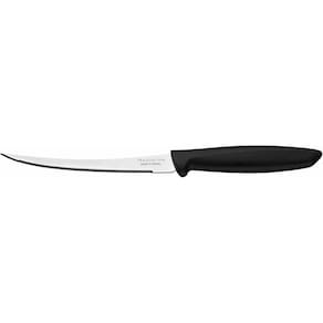 Nada como facas que facilitam nossa vida e tornam os momentos na cozinha mais práticos. A faca para tomate Tramontina Plenus com lâmina em aço inox e cabo de polipropileno preto 5 polegadas deixa as tarefas diárias mais especiais. Criada para cortar tomates, sua lâmina microsserrilhada rompe a pele do tomate sem amassar. Produzida com a qualidade do aço inox, a lâmina de 5 polegadas é resistente e funcional. Tenha facas da linha Tramontina Plenus e garante praticidade em sua cozinha!