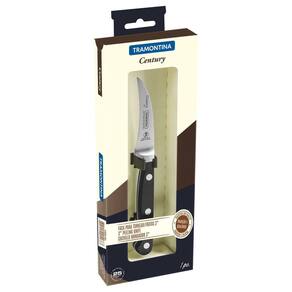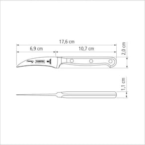 Faca para Tornear Tramontina Century com Lâmina em Aço Inox com Cabo de Policarbonato e Fibra de Vidro 3" A Faca para Tornear Tramontina Century com Lâmina em Aço Inox com Cabo de Policarbonato e Fibra de Vidro 3 polegadas da linha Century é a escolha ideal para o uso diário e intenso, garantindo alto desempenho e excelência no corte. Produzida com lâmina em aço inox, com cabo em policarbonato com fibra de vidro, a Faca Tramontina para Tornear recebe tratamento térmico composto por têmpera (aquecimento da lâmina), sub-zero (resfriamento de -50° C a -196° C ) e revenimento (aumento da flexibilidade do aço especial), proporcionando vida longa e eficiente. Para tornar o manuseio ainda mais seguro e confortável, o cabo é anatômico e ergonômico. Com ela você irá fazer dos seus pratos receitas ainda mais saborosas. Informações Gerais Torneia, descasca e esculpe frutas e legumes. A lâmina forjada de aço inox especial garante um fio com maior durabilidade e precisão. A lâmina possui tratamento térmico diferenciado, composto por têmpera, sub-zero e revenimento. E conta com dureza da lâmina de 55 e 58 HRC, que garante maior resistência do fio e precisão no corte. O cabo de policarbonato reforçado com fibra de vidro garante alta durabilidade e equilíbrio. O cabo ergonômico proporciona maior segurança e conforto durante o manuseio. Pode ir à máquina de lavar louças facilitando seu dia a dia.