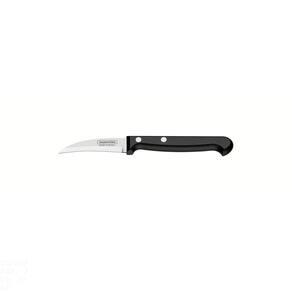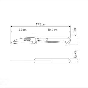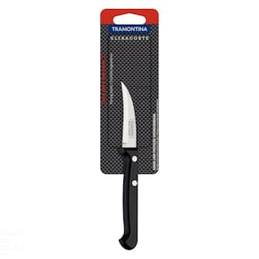 Para atender diferentes necessidades na cozinha, a Linha Ultracorte da Tramontina possui uma faca ideal para os mais diferentes tipos de cortes. A Faca para Tornear Tramontina Ultracorte com Lâminas em Aço Inox e Cabo de Polipropileno Preto 3 Polegadas da Linha Ultracorte é projetada para tornear, esculpir, e descascar legumes, vegetais e frutas. Essencial, é produzida com lâmina de 3 polegadas em aço inox que recebe tratamento térmico, dando maior durabilidade ao fio. O cabo em polipropileno na elegante cor preta é resistente e tem proteção antimicrobiana que inibe o crescimento de bactérias e fungos. Pode ser levada à máquina de lavar louças. Orientações Torneia, descasca e esculpe frutas e legumes.A lâmina de aço inox têm maior durabilidade do fio devido ao tratamento térmico. O cabo de polipropileno possui maior resistência e durabilidade. E conta com proteção antimicrobiana, que inibe e reduz o crescimento de bactérias e fungos proporcionando benefícios em higiene e redução de microorganismos que causam contaminação. Esta ação dura por toda a vida útil dos produtos, mas não elimina a necessidade de limpeza.Rebites de alumínio.Pode ir à máquina de lavar louças facilitando seu dia a dia. Características Gerais EAN13 7891112110182 DUN14 17891112110189 NCM 8211.92.10 Peso Líquido 0,0250 kg. Peso Bruto 0,0350 kg. Metragem 0,000231 m³. Dimensões Embalagem (Compr. X Larg. X Alt.) 14x 60x 275 mm. Dimensões Produto (Compr. X Larg. X Alt.) 173x 21x 12 mm. Cor 1 000000 Hexa Observações Antes da primeira utilização, lave bem a peça e seque-a. Produto cortante e perfurante: tenha cuidado ao manusear e mantenha fora do alcance das crianças. Para maior durabilidade do produto recomenda-se secar bem antes de guardar, mesmo após lavagem em máquina. Recomenda-se o uso de tábuas de polipropileno ou madeira da Tramontina para maior durabilidade do fio da faca. Não é indicado o uso da faca para o corte de alimentos congelados. Mantenha sempre sua faca afiada utilizando os afiadores da Tramontina.Para descarte dos produtos e embalagens siga as orientações de reciclagem vigentes.