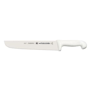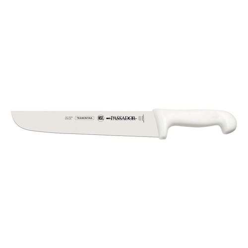 Faca Passador Tramontina Profissional Com Lâmina Em Aço Inox E Cabo Em Polipropileno Branco 10" Tramontina Faca Passador Tramontina Profissional com Lâmina em Aço Inox e Cabo em Polipropileno Branco 10 Tramontina - Para cortar e servir deliciosos cortes de carnes assados, bem fininhos e na medida certa para cada pessoa, utilize a Faca Passador Tramontina Profissional com Lâmina em Aço Inox e Cabo em Polipropileno Branco 10 polegadas. Produzida com lâmina em aço inox especial e cabo de polipropileno texturizado, sendo muito resistente e durável. Conta com proteção antimicrobiana, incorporada ao cabo, que inibe o crescimento de fungos e bactérias. Ela ainda é muita prática e de fácil manuseio, o que a torna indispensável para sua cozinha!OrientaçõesIdeal para lasquear carne assadas. Lâmina resistente, afiada e durável. Lâmina de aço inox especial tratado termicamente com processo sub-zero, garantindo níveis de dureza média de 56 HRc. Desbaste cônico na espessura adequada para cada aplicação, garantindo precisão e durabilidade no fio de corte. Cabo anatômico, higiênico e seguro. Cabo em polipropileno texturizado, oferecendo maior conforto e segurança no manuseio. Cabo injetado diretamente sobre a espiga que garante perfeita fixação e evita a retenção de resíduos. Cabo com proteção antimicrobiana que inibem o crescimento de fungos e bactérias, proporcionando benefícios em higiene e redução de microorganismos que causam contaminação.ObservaçõesProdutos cortantes e perfurantes, tenha cuidado ao manusear e mantenha fora do alcance das crianças. Para maior durabilidade dos produtos recomenda-se secar bem depois de lavar, mesmo após lavagem em máquina de lavar. Para descarte dos produtos e embalagens sigas as orientações de reciclagem vigentes.Características GeraisEAN137891112052222DUN1417891112052229NCM8211.92.10Peso Líquido0,2300 kg.Peso Bruto0,2350 kg.Metragem0,000631 m.Dimensões Embalagem (Compr. X Larg. X Alt.)410x 57x 27 mm.Dimensões Produto (Compr. X Larg. X Alt.)415x 57x 27 mm.Cor 1FFFFFF Hexa Características Gerais do Produto: - Cor: Branco Garantia: - 1 Ano