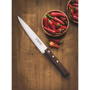 Os cabos de madeira natural com acabamento polido dão toque rústico à Linha Tradicional. Os talheres podem ser levados à mesa nas refeições do dia a dia e também em ambientações bucólicas. As facas têm fio de grande durabilidade, pois recebem tratamento térmico. O formato das lâminas e a espessura do aço oferecem maior resistência e tempo de utilização. Orientações Lâmina de aço inox.Cabo de madeira natural. Observações USO SEGURO E ADEQUADO:Antes da primeira utilização, lave bem as peças e seque-as. Tenha cuidado ao manusear produtos cortantes e perfurantes e mantenha-os fora do alcance de crianças. Para maior durabilidade dos produtos, recomenda-se secar bem antes de guardar.Para descarte dos produtos e embalagens siga as orientações de reciclagem vigentes. Características Gerais EAN13 7891112006034 DUN14 17891112006031 NCM 8211.92.10 Peso Líquido 0,0650 kg. Peso Bruto 0,0700 kg. Metragem 0,000135 m³. Dimensões Embalagem (Compr. X Larg. X Alt.) 275x 35x 14 mm. Dimensões Produto (Compr. X Larg. X Alt.) 266x 35x 14 mm. Espessura 1,4 mm.