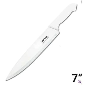 A faca peixeira 7, tem tudo para deixar a sua cozinha completa pois é indicada para auxiliar no preparo de suas receitas. Fabricada em lâmina de aço inox com cabo plástico que facilita o manuseio e a limpeza. Indicada para corte de carnes, legumes e frutas.