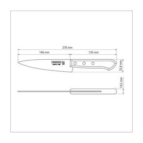 Faca Peixeira/cozinha 6" Faca Peixeira/Cozinha 6 As facas das linhas Carbono têm lugar certo em sua cozinha. O toque da natureza é dado por cabos rústicos de madeira, todos finalizados com rebites de alumínio. O poder de corte é garantido pelo tratamento térmico aplicado às lâminas de de aço carbono finalizadas com verniz protetor.