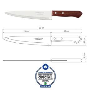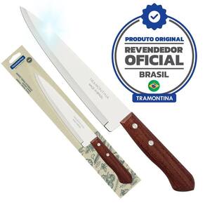 Faca peixeira de cozinha 8 em inox cabo de madeira dynamic Faca peixeira/cozinh inox 8 dynamic 8 faca peixeira tramontina dynamic com lâmina de aço inox e cabo de madeira 8 polegadas facilita sua vida no preparo das refeições. Desenvolvida para o corte de diversos alimentos, ela alia bom gosto e estilo em um só produto. Produzida com lâmina de 5 polegadas em aço inox, apresenta maior durabilidade e resistência devido ao tratamento térmico que recebe. Possui também cabo de madeira natural que dá um toque rústico cheio de charme para o produto, além de rebites de alumínio. A faca certa para preparar as receitas do dia a dia