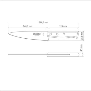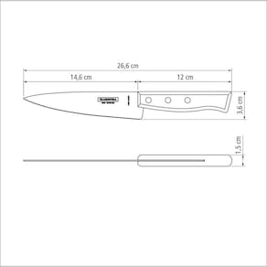 Tradicionalmente chamada de peixeira, se difundiu na cozinha para usos diversos.Lâmina de aço inox com maior durabilidade do fio devido ao tratamento térmico. Cabo de madeira natural com rebites de alumínio.