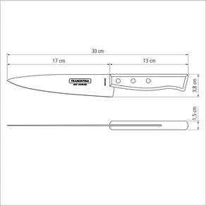 Que tal contar com uma peça perfeita no preparo de suas refeições com peixe? A Faca Peixeira e Cozinha Tramontina Tradicional com Lâmina em Aço Inox e Cabo em Madeira Natural 7 polegadas é a peça ideal para essas atividades. Com cabo de madeira natural com acabamento polido, a peça terá um toque rústico. Além disso, a lâmina de aço inox conta com uma espessura que oferece maior resistência. Eficiência e praticidade é com a Tramontina! Orientações Tradicionalmente chamada de peixeira, se difundiu na cozinha para usos diversos.A lâmina de aço inox tem maior durabilidade do fio devido ao tratamento térmico. O cabo é de madeira natural. Rebites de alumínio. Observações Antes da primeira utilização, lave bem a peça e seque-a. Produto cortante e perfurante: tenha cuidado ao manusear e mantenha fora do alcance das crianças. Para maior durabilidade do produto recomenda-se secar bem antes de guardar. Recomenda-se o uso de tábuas de polipropileno ou madeira da Tramontina para maior durabilidade do fio da faca. Não é indicado o uso da faca para o corte de alimentos congelados. Mantenha sempre sua faca afiada utilizando os afiadores da Tramontina.Para descarte dos produtos e embalagens siga as orientações de reciclagem vigentes. Características Gerais EAN13 7891112002593 DUN14 17891112002590 NCM 8211.92.10 Peso Líquido 0,0860 kg. Peso Bruto 0,1050 kg. Metragem 0,000382 m³. Dimensões Embalagem (Compr. X Larg. X Alt.) 15x 67x 380 mm. Dimensões Produto (Compr. X Larg. X Alt.) 300x 38x 15 mm.