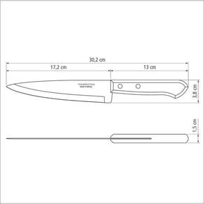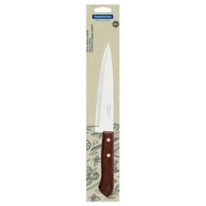 Faca Peixeira Tramontina 7 Dynamic Cabo Em Madeira A Tramontina não deixa faltar uma boa faca para sua cozinha. A linhaUniversal, fabricada com lâminas de aço inox, é perfeita para descascarfrutas, cortar carnes, peixes e tudo o que você precisar. Cortes fáceise seguros para cozinhar com mais qualidade e prazer. Recomendações de Uso: Antes do uso: Antes de utilizar o , remova as eventuais etiquetas e lave-o com água e de uso:Durante a lavagem use somente esponja macia, outros tipos de produtos, como palha de aço, poderão riscar ou prejudicar o brilho do aço inox. Enxágue bem a peça a fim de remover totalmente os resíduos dos produtos de limpeza, que por serem abrasivos, podem danificar o inox. Após a lavagem enxugue a peça, pois as substâncias químicas contidas na água poderão causar manchas. Sempre que possível use água quente, pois renova o brilho do talher. Evite o das peças com superfícies quentes, pois podem provocar a descoloração do produto. Quando usar a máquina de lavar louça, recomendamos retirar o talher logo que tenha terminado o ciclo enxaguar, a fim de que os mesmos sejam secados manualmente.- Tenha cuidado ao Manusear produtos cortantes e perfurantes e mantenha-os fora do alcance de crianças.- Foto meramente ilustrativa. Informações Adicionais: