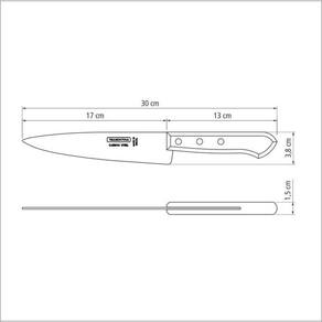 Antes do uso: Antes de utilizar o , remova as eventuais etiquetas e lave-o com água e de uso:Durante a lavagem use somente esponja macia, outros tipos de produtos, como palha de aço, poderão riscar ou prejudicar o brilho do aço inox. Enxágue bem a peça a fim de remover totalmente os resíduos dos produtos de limpeza, que por serem abrasivos, podem danificar o inox. Após a lavagem enxugue a peça, pois as substâncias químicas contidas na água poderão causar manchas. Sempre que possível use água quente, pois renova o brilho do talher. Evite o das peças com superfícies quentes, pois podem provocar a descoloração do produto. Quando usar a máquina de lavar louça, recomendamos retirar o talher logo que tenha terminado o ciclo enxaguar, a fim de que os mesmos sejam secados manualmente.- Tenha cuidado ao Manusear produtos cortantes e perfurantes e mantenha-os fora do alcance de criançções de uso: As facas com lâmina de aço carbono se caracterizam por uma maior resistêcia do fio, o que lhe confere bom poder de corte e são facilmente afiadas. Entretanto essa propriedade do aço carbono dá uma propensão maior à oxidação e descoloração do aço, se não forem tomados alguns cuidados básicos como: - Sua faca é uma ferramrnta de corte, não utilize para fins indequados. - Procure mantê-la sempre afiada. - Evite procedimentos que possam danificar o fio. Recomenda-se operações de corte sobre uma prancha de madeira ou plático, que além de proteger as superfícies de sua cozinha, retardam o desgaste do fio da faca. - Lave-a após cada utilização com água morna e seque-a imediatamente, evitando assim que a faca seque naturalmente, pois a umidade é a maior inimiga de sua faca carbono.- Ao guardar sua faca proteja a lâmina com algum óleo protetivo, o que reduzirá a possibidade de oxidação. O azeite comestível é uma das alternativas.- Foto meramente ilustrativa.