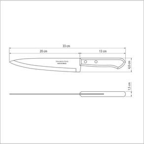 Faca Peixeira Tramontina 8 Dynamic Cabo Em Madeira A Tramontina não deixa faltar uma boa faca para sua cozinha. A linhaUniversal, fabricada com lâminas de aço inox, é perfeita para descascarfrutas, cortar carnes, peixes e tudo o que você precisar. Cortes fáceise seguros para cozinhar com mais qualidade e prazer. Recomendações de Uso: Antes do uso: Antes de utilizar o , remova as eventuais etiquetas e lave-o com água e de uso:Durante a lavagem use somente esponja macia, outros tipos de produtos, como palha de aço, poderão riscar ou prejudicar o brilho do aço inox. Enxágue bem a peça a fim de remover totalmente os resíduos dos produtos de limpeza, que por serem abrasivos, podem danificar o inox. Após a lavagem enxugue a peça, pois as substâncias químicas contidas na água poderão causar manchas. Sempre que possível use água quente, pois renova o brilho do talher. Evite o das peças com superfícies quentes, pois podem provocar a descoloração do produto. Quando usar a máquina de lavar louça, recomendamos retirar o talher logo que tenha terminado o ciclo enxaguar, a fim de que os mesmos sejam secados manualmente.- Tenha cuidado ao Manusear produtos cortantes e perfurantes e mantenha-os fora do alcance de crianças.- Foto meramente ilustrativa. Informações Adicionais: