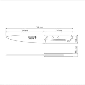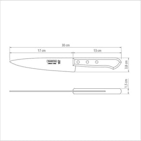 Aquela receita deliciosa exige um preparo especial, e para isso a Faca Peixeira Tramontina com Lâmina em Aço Carbono com Cabo de Madeira 7 polegadas é um utensílio indispensável! Ideal para tornar o preparo ainda mais ágil e prazeroso, ela tem lâmina produzida em aço carbono com um verniz protetor, além de ser submetida a um tratamento térmico que a torna mais eficiente desempenhando suas tarefas na cozinha. Seu cabo é em madeira rústica com rebites de alumínio, e garante além de beleza, muito mais conforto na hora da utilização. Orientações Tradicionalmente chamada de peixeira, se difundiu na cozinha para usos diversos.Lâmina de aço carbono com maior durabilidade e resistência do fio de corte. Cabo de madeira.Rebites de alumínio. Características Gerais EAN13 7891112003675 DUN14 17891112003672 NCM 8211.92.10 Peso Líquido 0,0832 kg. Peso Bruto 0,1200 kg. Metragem 0,000407 m³. Dimensões Embalagem (Compr. X Larg. X Alt.) 16x 67x 380 mm. Dimensões Produto (Compr. X Larg. X Alt.) 300x 38x 15 mm. Observações Produto cortante e perfurante, tenha cuidado ao manusear e mantenha fora do alcance das crianças.As facas com lâmina de aço carbono se caracterizam por uma maior resistência do fio, o que lhe confere bom poder de corte e são facilmente afiadas. Entretanto essa propriedade do aço carbono dá uma propensão maior à oxidação e descoloração do aço, se não forem tomados alguns cuidados básicos como:Sua faca é uma ferramenta de corte, não a utilize para fins inadequados. Procure mantê-la sempre afiada. Evite procedimentos que possam danificar o fio. Recomendam-se operações de corte sobre uma prancha de madeira ou plástico, que além de proteger as superfícies da sua cozinha, retardam o desgaste do fio da faca. Lave-a após cada utilização com água morna e seque-a imediatamente, evitando assim que a faca seque naturalmente, pois a umidade é a maior inimiga de sua faca carbono.Ao guardar sua faca carbono proteja a lâmina com algum óleo protetivo, o que reduzirá a possibilidade de oxidação. O azeite comestível é uma das alternativas.Recomenda-se o uso de tábuas de polipropileno ou madeira da Tramontina para maior durabilidade do fio da faca.Não é indicado o uso da faca para o corte de alimentos congelados. Mantenha sempre sua faca afiada utilizando os afiadores da Tramontina. Para descarte dos produtos e embalagens siga as orientações de reciclagem vigentes.