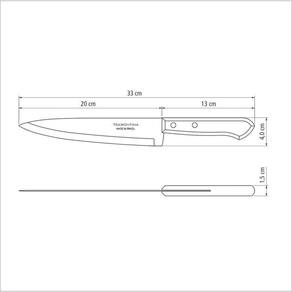 Muito mais praticidade e estilo com a Faca Peixeira Tramontina Dynamic com Lâmina de Aço Inox e Cabo de Madeira 8 Polegadas. Produzida com lâmina de aço inox, recebe tratamento térmico que garante maior durabilidade e resistência ao fio de corte. Possui 8 polegadas e um charmoso cabo de madeira natural que dá um toque rústico à peça. Tem ainda rebites de alumínio. Uma faca essencial para o preparo das refeições do dia a dia! Orientações Lâmina de aço inox com maior durabilidade do fio devido ao tratamento térmico. Cabo de madeira natural. Rebites de alumínio. Características Gerais EAN13 7891112003033 DUN14 17891112003030 NCM 8211.92.10 Peso Líquido 0,1021 kg. Peso Bruto 0,1230 kg. Metragem 0,000407 m³. Dimensões Embalagem (Compr. X Larg. X Alt.) 16x 67x 380 mm. Dimensões Produto (Compr. X Larg. X Alt.) 330x 40x 15 mm. Observações Antes da primeira utilização, lave bem as peça e seque-a. Produto cortante e perfurante: tenha cuidado ao manusear e mantenha fora do alcance de crianças. Para maior durabilidade dos produtos, recomenda-se secar lavar manualmente e secá-lo antes de guardar.Para descarte dos produtos e embalagens siga as orientações de reciclagem vigentes.
