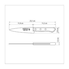 - Marca: Tramontina; - Tradicionalmente chamada de peixeira, se difundiu na cozinha para usos diversos; - Lâmina de aço carbono com maior durabilidade e resistência do fio de corte; - Cabo de madeira; - Rebites de alumínio; - Peso: 63,7 gr; - Garantia: 90 dias para vícios ou defeitos de fabricação.
