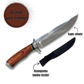 Faca Personalizada Para Pesca Caça E Churrasco Com Bainha Descrição: Faca Personalizada para Churrasco e Caça - Aço Inox com Bainha Estilo, robustez e funcionalidade em uma só peça. Ideal para quem leva o churrasco ou a caça a sério, esta faca une qualidade premium, design marcante e a exclusividade da personalização a laser. - Detalhes do Produto: .Lâmina em aço inox de alta resistência e corte preciso .Super afiada: desempenho para cortes limpos e rápidos .Tamanho total: 30,5 cm Lâmina: 18,2 cm .Largura da lâmina: 3,8 cm Espessura diâmetro : 4 mm .Peso: 252 g - ideal para quem prefere facas mais encorpadas .Acompanha bainha de tecido Napa para transporte seguro e elegante - Personalização Exclusiva a Laser: .Grave nome e símbolo à sua escolha .Envie os dados imediatamente após a compra .OBS: Se os dados não forem enviados, a faca será enviada sem personalização - Destaques: .Ideal para churrasco, caça ou coleção .Acabamento impecável e excelente durabilidade .Presente perfeito para amantes da faca artesanal .Peça robusta e de alta qualidade - Atenção: .Produto extremamente afiado. .Mantenha fora do alcance de crianças. .Utilize com cuidado. Marca: Não Informado Ean: 7897523159666