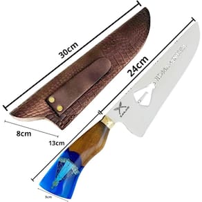 Dimensões da faca com bainha: 40cm (C) x 2,5cm (L) x 7,5cm (A);