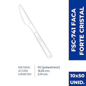 Substitua com elegância os talheres de metal, aproveitando a praticidade dos descartáveis. A Faca Forte Refeição possui estrutura reforçada, indicada para refeições completas.