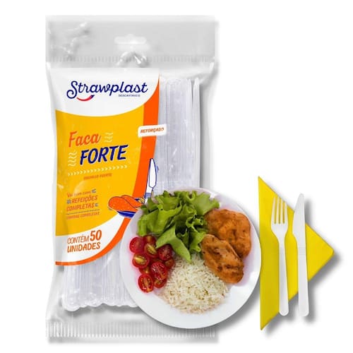 Substitua com elegância os talheres de metal, aproveitando a praticidade dos descartáveis. A Faca Forte Refeição possui estrutura reforçada, indicada para refeições completas.