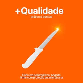 Fabricada em aço inox de alta resistência, a faca possui 6 polegadas de comprimento, sendo ideal para separar carne dos ossos com precisão. O cabo em polipropileno foi desenvolvido para proporcionar conforto e segurança durante o uso contínuo, sendo altamente resistente a impactos e ao calor.