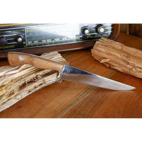 Além de ser versátil, ela é produzida com Aço Carbono Alemão. Conhecido por seu alto teor de carbono e dureza. Suas principais características são um corte preciso e fácil afiação. A lâmina também passou por um tratamento térmico integral, que gera maior dureza e faz com que o fio dure por muito mais tempo.