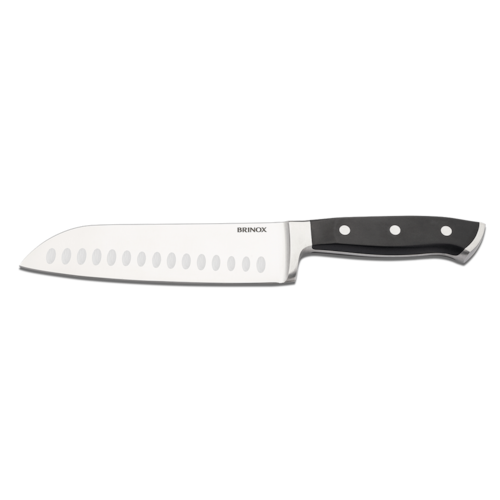 Facas sofisticadas, precisas e com excelente balanço. A linha Infinity é para quem entende que um bom corte significa tudo na hora de preparar sua refeição. Possui lâminas em aço inoxidável temperadas, proporcionando maior durabilidade para o fio. Na espiga da lâmina em aço inoxidável maciço é injetado o ABS, o que garante mais estabilidade. Possuem também, proteção para os dedos e rebites, ambos em aço inoxidável, proporcionando cortes perfeitos. Com lâmina forte, larga e muito afiada. A faca Santoku é utilizada para cortar, picar e fatiar. Possui bolsões de ar, que auxiliam a desgrudar o alimento da faca. Nesta versão, poussui lâmina de 7 polegadas e medidas: 31,4 x 4,6 x 1,9 cm.