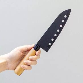Faca santoku em inox grafite e cabo acácia.