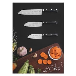 Faca Santoku Tramontina Century Com Lâmina Em Aço Inox E Cabo Em Policarbonato Preto E Fibra De Vidro 7 Descobrir novas receitas, preparar os alimentos da melhor forma e com os melhores instrumentos é parte da inspiração dos artistas. E, para tornar esta realidade uma arte, a Tramontina desenvolve seus utensílios com o que há de mais moderno, levando precisão, qualidade e beleza à sua cozinha. Uma linha completa para atender chefs, gourmets e aficcionados pela cozinha. Recomendações de Uso: Antes do uso: Antes de utilizar o , remova as eventuais etiquetas e lave-o com água quente, detergente e enxugue-a de uso: Após cada uso, lave o produto. Durante a lavagem use somente esponja macia e detergente, outros tipos de produtos, como palha de aço, poderão riscar a superfície do produto. Enxágue bem a peça a fim de remover totalmente os resíduos dos produtos de limpeza. Pode ser lavada à máquina de lavar louças. Após a lavagem enxugue-o bem com toalha de pano. cuidado ao manusear produtos cortantes e perfurantes e mantenha-os fora do alcance de crianças.- Foto meramente ilustrativa- Embalagem litografada. Informações Adicionais: