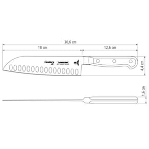 - As facas Century possuem certificação da National Sanitation Foundation (NSF), a organização internacionalmente reconhecida em monitoração de de alimentos e práticas de higiene em empresas de alimentos e restaurantes.- As facas Century possuem lâmina de aço inox DIN forjada em uma só peça (monobloco) garantindo a resistência e a durabilidade do produto. O nível de dureza de 55HRC a 58HRC é obtida através de um moderno sistema de têmpera que proporciona um fio durável e preciso.- A lâmina apresenta um desbaste perfeito terminado em V assegurando um corte e melhor rendimento, mesmo depois de múltiplas afiações.- Cabo em Policarbonato com fibra de vidro, injetado diretamente sobre a espiga da lâmina, tem boa resistência a impactos. Ean: 7891112075955
