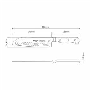 Antes da primeira utilização, lave bem a peça e seque-a. Produto cortante e perfurante: tenha cuidado ao manusear e mantenha fora do alcance das crianças. Para maior durabilidade do produto recomenda-se secar bem antes de guardar, mesmo após lavagem em máquina. Recomenda-se o uso de tábuas de polipropileno ou madeira da Tramontina para maior durabilidade do fio da faca. Não é indicado o uso da faca para o corte de alimentos congelados. Mantenha sempre sua faca afiada utilizando os afiadores da Tramontina.Para descarte dos produtos e embalagens siga as orientações de reciclagem vigentes.