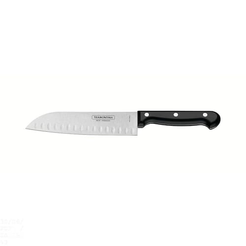 A Faca Santoku Tramontina Ultracorte com Lâmina em Aço Inox e Cabo de Polipropileno Preto 7 Polegadas da Linha Ultracorte atende as diferentes necessidades de preparações existentes na cozinha. Adequada para cortar, fatiar e picar frutas alimentos da sua escolha, ela é produzida com materiais de qualidade. A lâmina de 7 polegadas em aço inox recebe tratamento térmico, que dá mais durabilidade ao fio. O cabo em polipropileno na cor preta possui proteção antimicrobiana, inibindo o crescimento de bactérias e fungos. Anatômica, é confortável no manuseio e pode ser levada à máquina de lavar louças. Orientações Ideal para cortar, fatiar e picar.A lâmina de aço inox têm maior durabilidade do fio devido ao tratamento térmico. O cabo de polipropileno possui maior resistência e durabilidade. E conta com proteção antimicrobiana, que inibe e reduz o crescimento de bactérias e fungos proporcionando benefícios em higiene e redução de microorganismos que causam contaminação. Esta ação dura por toda a vida útil dos produtos, mas não elimina a necessidade de limpeza.Rebites de alumínio.Pode ir à máquina de lavar louças facilitando seu dia a dia. Características Gerais EAN13 7891112084681 DUN14 17891112084688 NCM 8211.92.10 Peso Líquido 0,1267 kg. Peso Bruto 0,1542 kg. Metragem 0,000730 m³. Dimensões Embalagem (Compr. X Larg. X Alt.) 22x 80x 415 mm. Dimensões Produto (Compr. X Larg. X Alt.) 305x 44x 20 mm. Cor 1 000000 Hexa Observações Antes da primeira utilização, lave bem a peça e seque-a. Produto cortante e perfurante: tenha cuidado ao manusear e mantenha fora do alcance das crianças. Para maior durabilidade do produto recomenda-se secar bem antes de guardar, mesmo após lavagem em máquina. Recomenda-se o uso de tábuas de polipropileno ou madeira da Tramontina para maior durabilidade do fio da faca. Não é indicado o uso da faca para o corte de alimentos congelados. Mantenha sempre sua faca afiada utilizando os afiadores da Tramontina.Para descarte dos produtos e embalagens siga as orientações de reciclagem vigentes.
