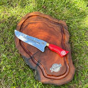 Faca Sport Club Internacional Picanheira 9' Artesanal Churrasco Aço Inox 420C Cabo Resinado Vermelho.