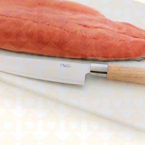 Feita de aço inoxidável forjado de alta qualidade, essa faca oferece durabilidade e resistência excepcionais. Seu cabo de madeira de lei proporciona uma aderência confortável e firme, enquanto a lâmina de 20,3 centímetros é especialmente projetada para atender às demandas dos sushimen, garantindo cortes precisos e consistentes.