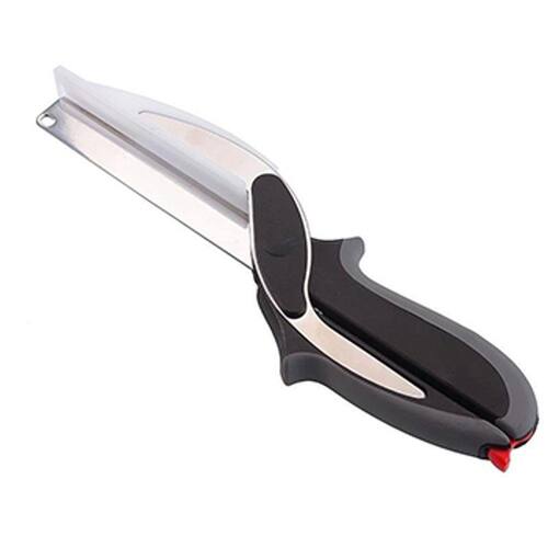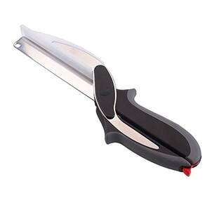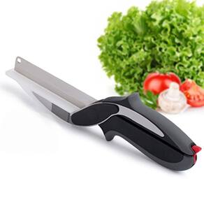 Corte seus alimentos diretamente sobre o recipiente pratos travessas etc. de forma rápida higiênica e segura com a faca tesoura fatiadora cortadora de alimentos 2 em 1!