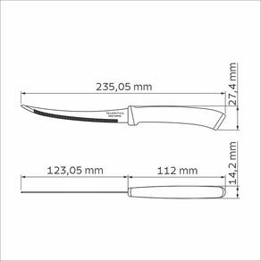 Antes da primeira utilização, lave bem as peças e seque-as. Produtos cortantes e perfurantes: tenha cuidado ao manusear e mantenha fora do alcance das crianças. Para maior durabilidade dos produtos recomenda-se secar bem antes de guardar, mesmo após lavagem em máquina. Recomenda-se o uso de tábuas de polipropileno ou madeira da Tramontina para maior durabilidade do fio das facas. Não é indicado o uso das facas para o corte de alimentos congelados. Para descarte dos produtos e embalagem siga as orientações de reciclagem vigentes.