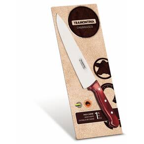 Faca Tramontina para Carne 10 em Aço Inox e Cabo Vermelho Polywood Para um excelente corte de carne não pode faltar uma faca de alta qualidade. Com a Faca Tramontina para Carne 10 polegadas com Lâmina em Aço Inox e Cabo Natural Polywood você poderá realizar os cortes com mais praticidade. A sua lâmina em aço inox é altamente durável. O cabo de madeira tratada Polywood oferece um manuseio confortável, além de ser resistente à impactos e altas temperaturas. A linha Churrasco é uma excelente escolha para quem deseja fazer bonito sempre. A lâmina de aço inox têm maior durabilidade do fio devido ao tratamento térmico. O cabo de madeira tratada Polywood é resistentes à impactos e alta temperaturas garantindo maior resistência e durabilidade. Rebite de alumínio. Pode ir à máquina de lavar louças facilitando seu dia a dia. Tenha cuidado ao manusear produtos cortantes e perfurantes e mantenha-os fora do alcance das crianças. Para maior durabilidade dos produtos recomenda-se secar bem antes de guardar. Para descarte dos produtos e embalagens siga as orientações de reciclagem vigentes. Como usar o produto Tenha cuidado ao manusear produtos cortantes e perfurantes e mantenha-os fora do alcance das crianças. Para maior durabilidade dos produtos recomenda-se secar bem antes de guardar. Para descarte dos produtos e embalagens siga as orientações de reciclagem vigentes. Descrição Técnica: A lâmina de aço inox têm maior durabilidade do fio devido ao tratamento térmico. O cabo de madeira tratada Polywood é resistentes à impactos e alta temperaturas garantindo maior resistência e durabilidade. Rebite de alumínio. Pode ir à máquina de lavar louças facilitando seu dia a dia.