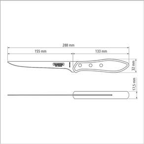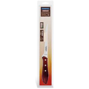 Faca Tramontina para Desossar 6 polegas com Lâmina em Aço Inox e Cabo Vermelho Polywood Desossar não precisa ser difícil. Com a Faca Tramontina para Desossar 6 polegas com Lâmina em Aço Inox e Cabo Vermelho Polywood você terá muito mais facilidade. Seu formato foi desenvolvido especialmente para oferecer mais agilidade na desossa, garantindo um corte perfeito da carne. Para garantir sua durabilidade, a lâmina foi produzida em aço inox, com cabo de madeira tratada Polywood, sendo resistente à impactos e altas temperaturas, além de proporcionar um manuseio confortável. Com a linha Churrasco você tem em mãos as facas adequadas para preparar e servir carnes de primeira. Surpreenda a todos com suas técnicas e sabor. Como usar o produto Tenha cuidado ao manusear produto cortante e perfurante e mantenha-o fora do alcance das crianças. Para maior durabilidade do produto recomenda-se secar bem antes de guardar, mesmo após lavagem em máquina. Para descarte dos produtos e embalagens siga as orientações de reciclagem vigentes. Descrição técnica: A lâmina de aço inox têm maior durabilidade do fio devido ao tratamento térmico. O cabo de madeira tratada Polywood é resistentes à impactos e alta temperaturas garantindo maior resistência e durabilidade. Rebite de alumínio. Pode ir à máquina de lavar louças facilitando seu dia a dia. Especificação técnica: EAN13: 7891112177789 DUN14: 17891112177786 NCM: 8211.92.10 Peso Líquido: 0,1000 kg. Peso Bruto: 0,1350 kg. Metragem: 0,000567 m³. Dimensões Produto Compr. X Larg. X Alt. : 288x 32x 18 mm. Cor 1: 93272C Hexa Marca: Não Informado