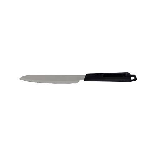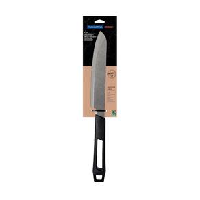 Um bom churrasqueiro sabe que para cortar e servir a carne é necessário ter uma boa faca. E para os churrasqueiros mais exigentes, a faca trinchante Tramontina Churrasco Black com lâmina em aço inox e cabo de polipropileno preto 8 polegadas é indispensável. Com ela, você fatia e corta a carne de forma prática e eficiente, graças a sua lâmina em aço inox com excelente afiação. Seu cabo é de polipropileno e garante um manuseio muito mais confortável e seguro. Escolha Tramontina e tenha alta qualidade na palma da sua mão! Orientações Lâmina de aço inox com maior durabilidade do fio devido ao tratamento térmico. Cabo de polipropileno com maior resistência e durabilidade. Características Gerais EAN13 7891112296633 DUN14 17891112296630 NCM 8211.92.10 Peso Líquido 0,1400 kg. Peso Bruto 0,1600 kg. Metragem 0,001041 m³. Dimensões Embalagem (Compr. X Larg. X Alt.) 90x 26x 445 mm. Dimensões Produto (Compr. X Larg. X Alt.) 408x 46x 26 mm. Cor 1 000000 Hexa Observações Antes da primeira utilização, lave bem a peça e seque-a. Produto cortante e perfurante: tenha cuidado ao manusear e mantenha fora do alcance das crianças. Não utilize materiais abrasivos para limpeza e para maior durabilidade do produto recomenda-se secar bem antes de guardar. Não utilize em máquinas de lavar. Para descarte do produto e embalagem siga as orientações de reciclagem vigentes.